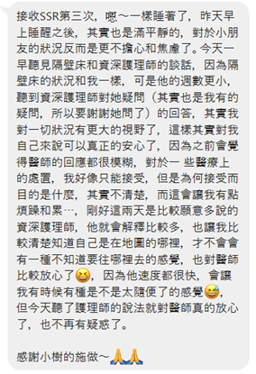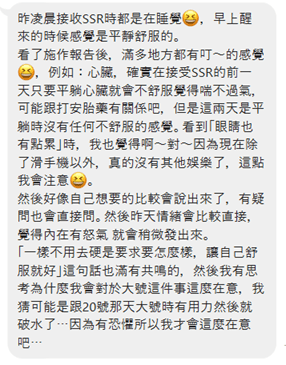 SSR心得 SSR個案回饋-安胎小記 分類: 顏小樹 於 2022 年 01 月 06 日2022 年 01 月 06 日 SSR個案回饋-安胎小記 今天分享的是前一陣子安胎的個案心得回饋 很多時候當我們面臨一個狀態的變化的時候其實會有一些情緒跟想法出現而SSR可以幫助身心回到平衡的狀態幫助釋放情緒 安撫你的思慮以及讓身體適應現狀的變化讓你可以更穩定的去面對現有的改變跟挑戰喔 這次是三天做一次,一共三次的SSR療程個案30周的時候開始安胎,31周開始做了SSR個案當然醫療專業的部分就是交給醫生最後35周時寶寶也順利的出生了:D可喜可賀可喜可賀~ 第一次SSR 第二次SSR 第3次SSR 分享此文: 按一下即可分享至 X(在新視窗中開啟) X 按一下以分享至 Facebook(在新視窗中開啟) Facebook 喜歡 正在載入...